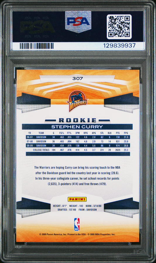 2009 Panini #307 Stephen Curry RC / PSA 8 / C9937