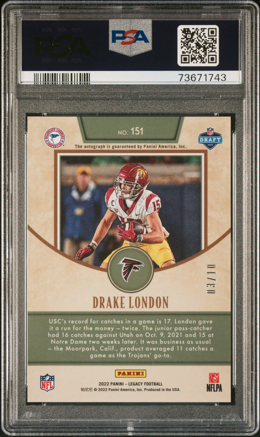 2022 Legacy #151 Drake London RC Auto Diamond (3/10) / PSA 9/10 / C1743