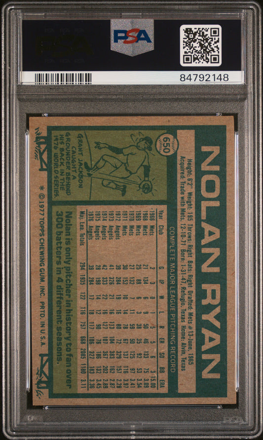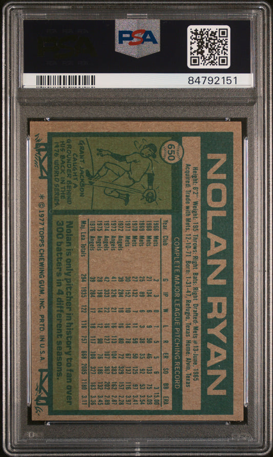 1977 Topps #650 Nolan Ryan / PSA 8 / C2150
