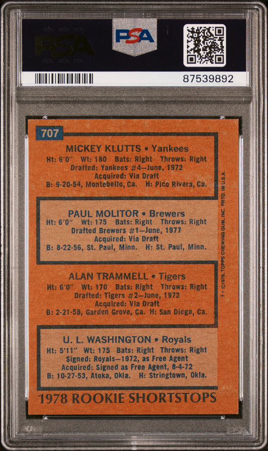 1978 Topps #707 Molitor (HOF), Trammell (HOF) RC / PSA 5 / C9892