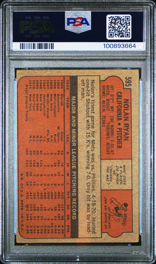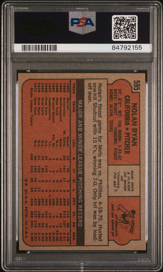 1972 Topps #595 Nolan Ryan / PSA 3.5 / C3664
