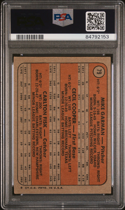 1972 Topps #79 Carlton Fisk Red Sox Rookies / PSA 5 / C2154