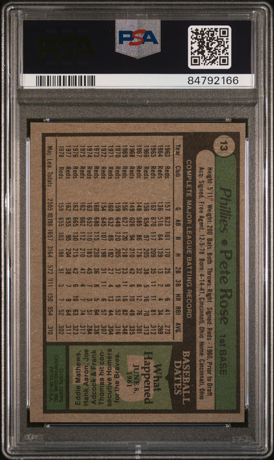 1979 Topps Burger King #13 Pete Rose / PSA 6 / C2166