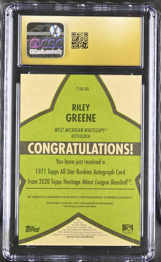 2020 Topps Heritage Minor 71AA-RG Riley Greene All Star Auto 26/50 / CGC Pristine 10 / C1002