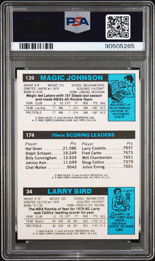 1980-81 Topps Scoring Leader Larry Bird RC, Erving, Magic Johnson RC / PSA 9 / SOLD